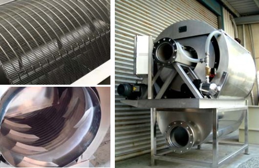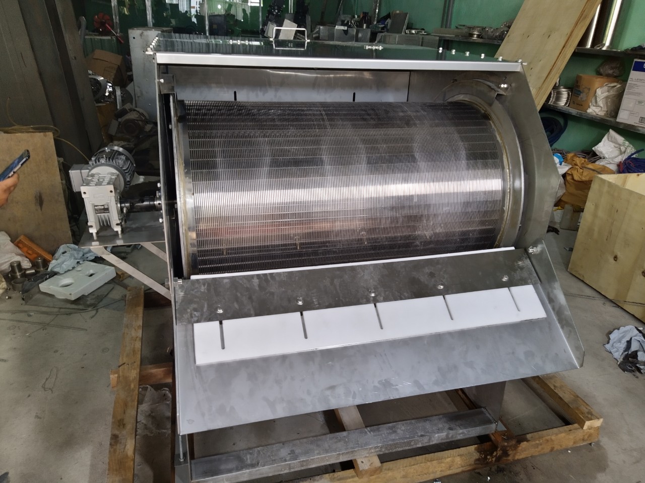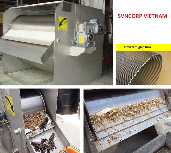 Nước chảy qua một hộp đầu chữ U nơi giảm vận tốc nước. Nước, với chất chất rắn lơ lửng, chảy theo vách ngăn và sau đó trở lên và được phân bố đều trên chiều dài của tấm hình trụ. Tấm lưới được làm bằng thép không gỉ có thể xử lý hiệu quả dầu mỡ, chất rắn rời rạc mà không bị tắt lỗ. Tác động tự nhiên của nước thải chạy qua tấm lưới tạo ra phản ứng ngược mạnh mẽ dẫn đến bề mặt tấm lưới dược làm sạch liên tục. Chất rắn bị giữ lại trên bề mặt tấm lưới được lấy ra bằng một lưỡi dao cạo được căng hoặc một lưỡi quay cứng bằng cao su. Hệ thống phun nước bể trong để làm sạch tấm lưới. Thanh phun xịt được tính theo in của bề mặt hình trụ để đảm bảo hiểu quả làm sạch tối đa